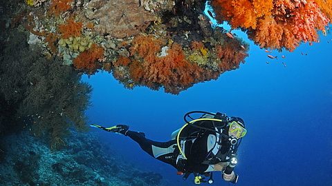 Riesige Fischschwärme, unberührte Korallenriffe, seltene Seepferdchen, Mantas, Haie und sogar Wale - mit einer spektakulären Unterwasserwelt zählt Indonesien zu den vielseitigsten Tauchgebieten der Welt. Rund 15 Prozent aller Korallenriffe der Erde verteilen sich in den Ozeanen um das Inselreich, mit über 4.000 verschiedenen Meeresbewohnern gibt es hier die weltweit größte marine Artenvielfalt. Versunkene Schiffe und imposante Steilwände locken zusätzlich in die spektakulären Tauchgründe.