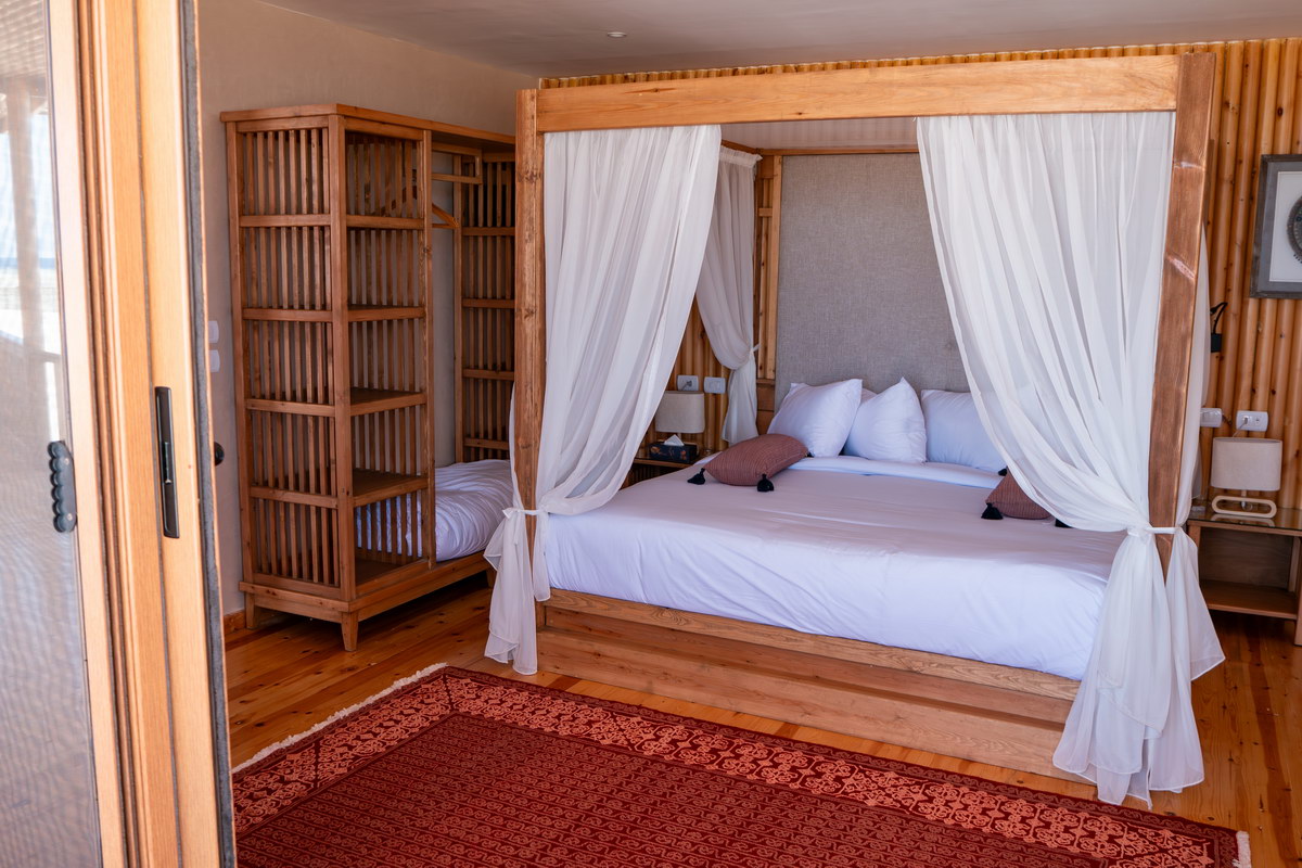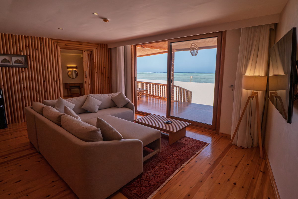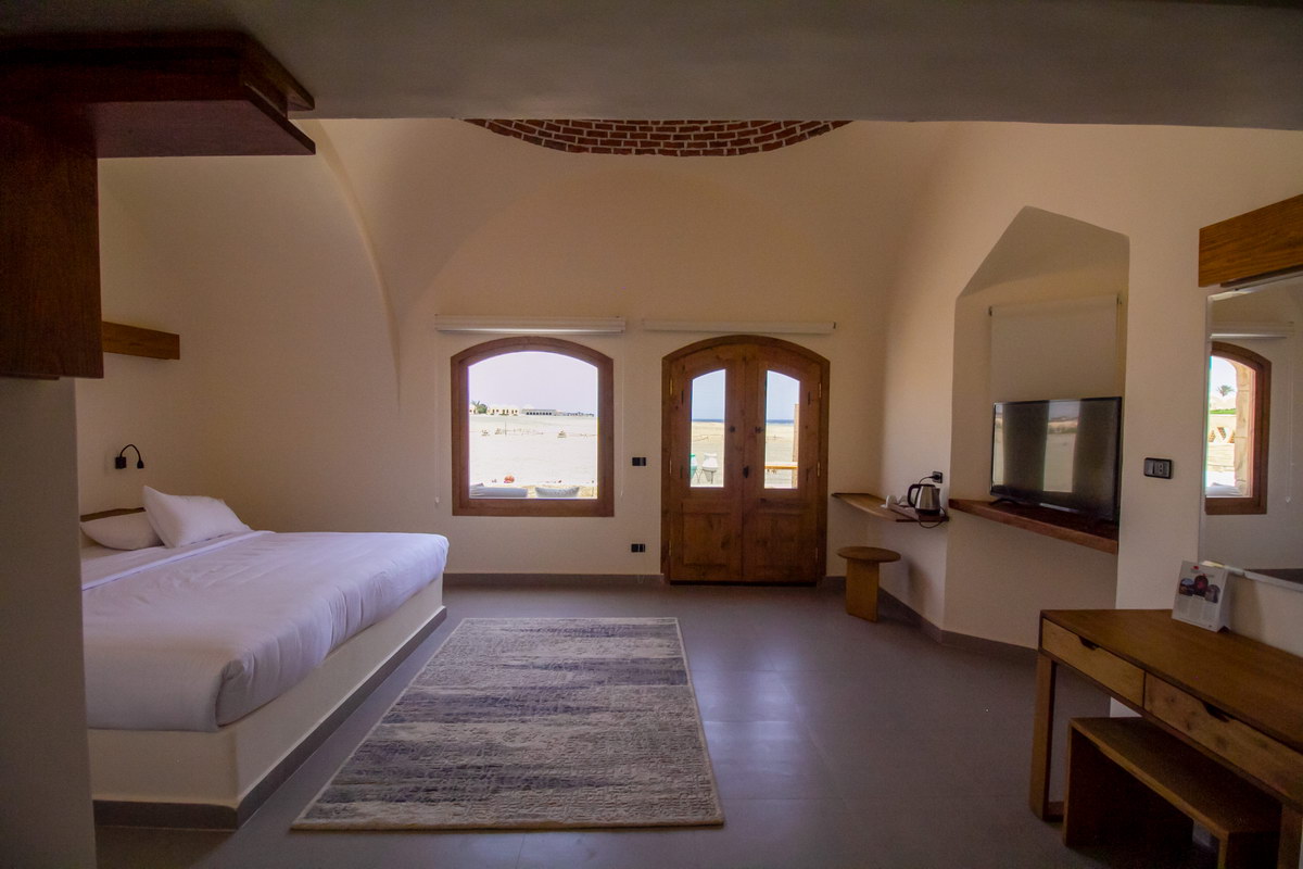 2025 neu hinzugekommen sind die Nano Suites – die exklusivste Unterkunftskategorie in Marsa Shagra. Nur sechs dieser großzügigen Suiten liegen direkt am Wasser und bieten auf 80 m² einen Wohnbereich, ein Schlafzimmer, ein modernes Bad und eine große private Terrasse mit unverbautem Blick auf das Rote Meer. Vier Suiten sind mit einem King-Size-Bett ausgestattet, zwei verfügen über Twin-Betten; alle bieten zusätzlich ein Schlafsofa für eine mögliche dritte Person. Die hochwertige Ausstattung und das elegante Design schaffen ein ruhiges, stilvolles Ambiente – ideal für Gäste, die den authentischen Charme des Eco-Village mit einem Hauch von Luxus erleben möchten.