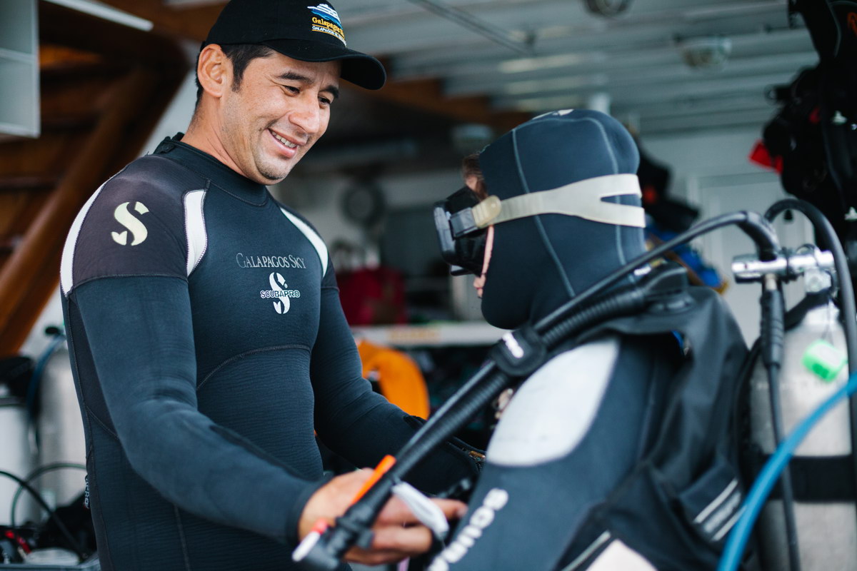 Die Tauchgänge werden von erfahrenen Tauchguides begleitet, die Gruppengröße ist überschaubar. Die Bedingungen im Galápagos-Archipel können anspruchsvoll sein und erfordern sichere Tarierung, Erfahrung in Strömung sowie Vertrautheit mit kühleren Wassertemperaturen. Die Teilnahme setzt entsprechende Taucherfahrung und eine gute körperliche Verfassung voraus.