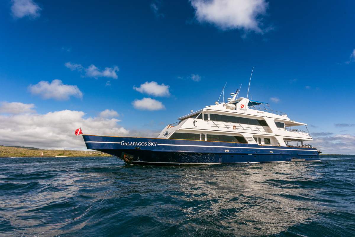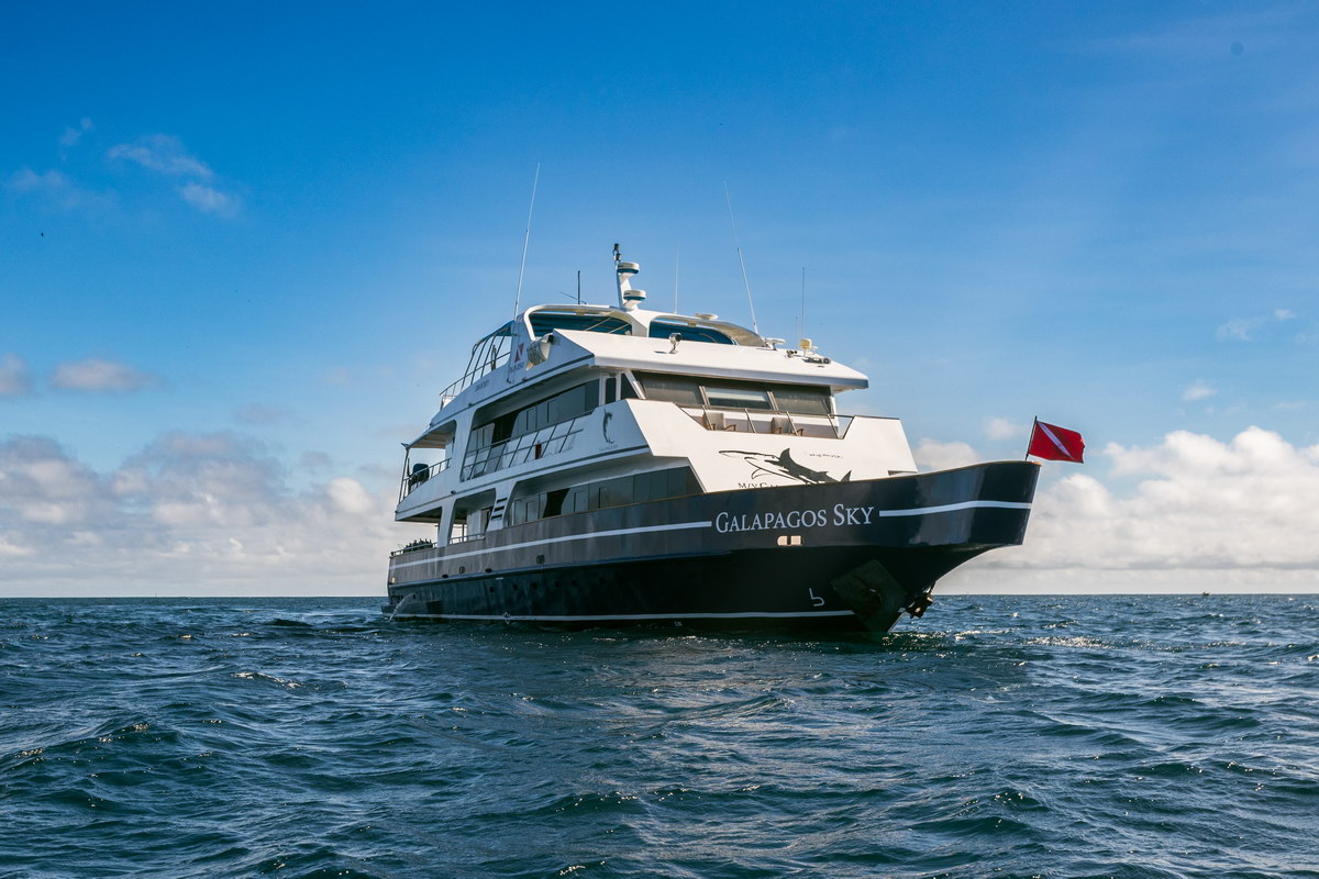 Die Galápagos Sky ist ein renommiertes Tauchsafarischiff mit einer Kapazität von maximal 16 Gästen und fährt ganzjährig festgelegte Routen im Galápagos-Archipel vor Ecuador. Die Region gehört zum UNESCO-Weltnaturerbe und ist für ihre außergewöhnliche Artenvielfalt über und unter Wasser bekannt. Die Tauchtage an den legendären Spots Wolf und Darwin – bekannt für Hammerhaischulen, Galápagoshaie, Seidenhaie, Delfine, Adlerrochen, Mantas und saisonal Walhaie – machen diese Tour zu einem Muss für ambitionierte Taucher. Bordbetrieb, Routenführung und Tagesablauf sind auf erfahrene Taucher ausgerichtet, die unter teils anspruchsvollen Bedingungen tauchen möchten.