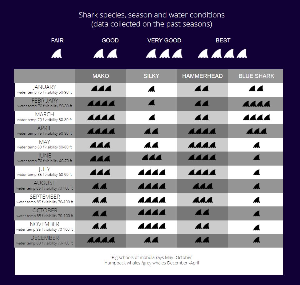 Erstklassig ausgebildete Shark Guides, Padi zertifizierte Instruktoren und erfahrene Meeresbiologen sorgen für Sicherheit und Professionalität im Blauwasser von Baja California Sur.