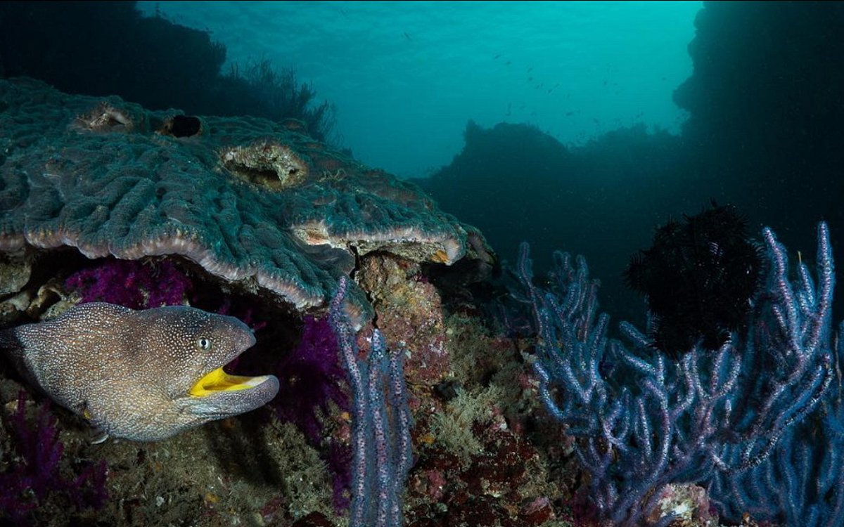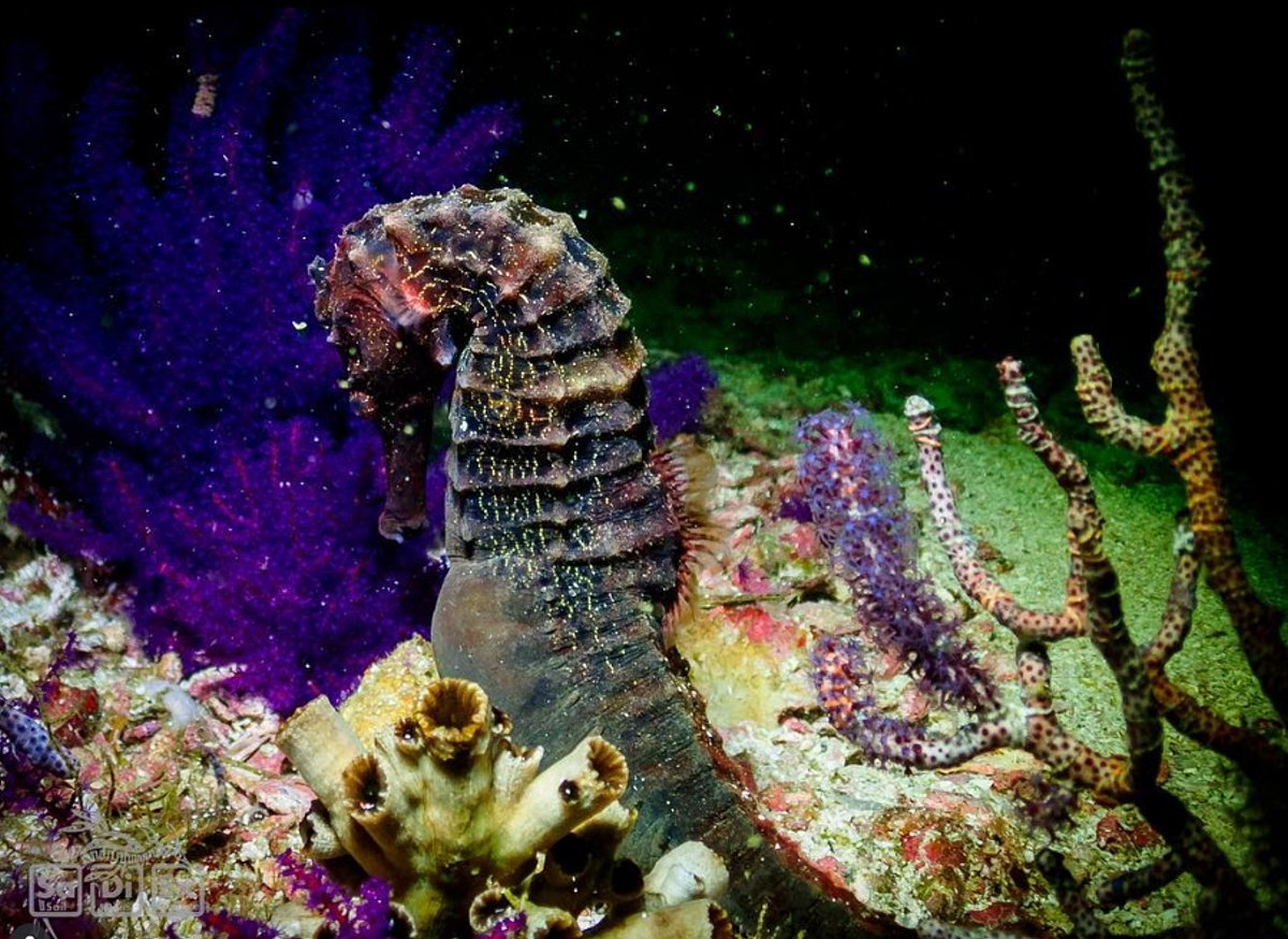 Die Unterwasserwelt der Musandam-Halbinsel gilt noch als weitgehend unentdeckt und bietet Tauchern abwechslungsreiche Riffe mit einer beeindruckenden Vielfalt an Weichkorallen, darunter viele lila Farbtöne. Zwischen den Korallen leben zahlreiche Rifffische sowie eine Fülle kleinerer Lebewesen. Muränen, Oktopusse, Krebse und Nacktschnecken sind häufig zu beobachten, und mit etwas Glück lassen sich auch Seepferdchen entdecken. Schwärme von Füsilieren und Schnappern ziehen gelegentlich vorbei, während Zitterrochen, Stachelrochen und Schildkröten hin und wieder auftauchen. Zusätzlich finden sich in Musandam einige Wracks, die spannende Alternativen zu den Rifftauchgängen bieten. Großfisch spielt hier hingegen kaum eine Rolle – die Faszination liegt vor allem in der Farbenpracht der Korallen, in den Makro-Motiven und in der Vielfalt kleinerer Meeresbewohner. Die Sichtweiten variieren je nach Strömung und können teilweise eingeschränkt sein.