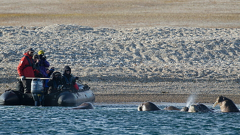 Whale Watching inklusive. Obwohl einst bis an den Rand der Ausrottung gejagt, sind Wale heutzutage häufig gesehen in den Gewässern rund um Spitzbergen. Mink-, Fin- und Buckelwale, ja sogar mitunter Blauwale, sind regelmäßige Besucher. Beluga-Wale leben hier ganzjährig.