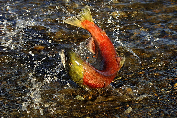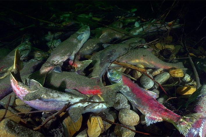 Das Naturphänomen startet, wenn sich die Lachse in ihr Hochzeitsgewand gekleidet im Adams River einfinden, Laichgruben ausheben und den Beginn für einen neuen Zyklus legen. Rund 4.000 Eier werden von jedem Weibchen in den lockeren Untergrund gelegt, vom Männchen befruchtet und dem Schicksal überlassen. Von der entbehrungsreichen Reise erschöpft, und am Ende des von der Natur vorgegebenen Lebenszyklus, sterben die Fische nur wenige Stunden nach der Eiablage. Die verwesenden Körper bereiten die Nahrungsgrundlage für die bald schlüpfenden 5 Milliarden Junglachse.